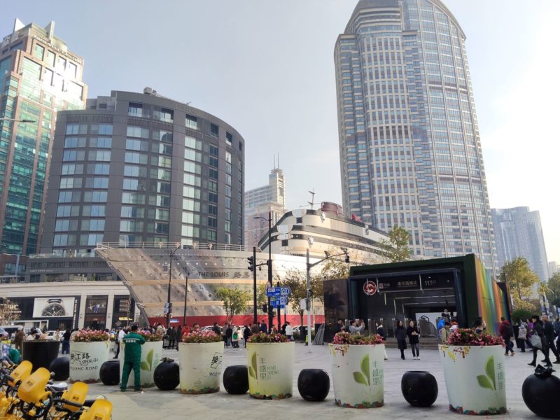 ルイヴィトンの近くの丸い建物がスタバロースタリーです。