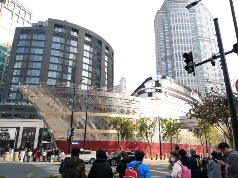 ルイヴィトンの近くの丸い建物がスタバロースタリーです。